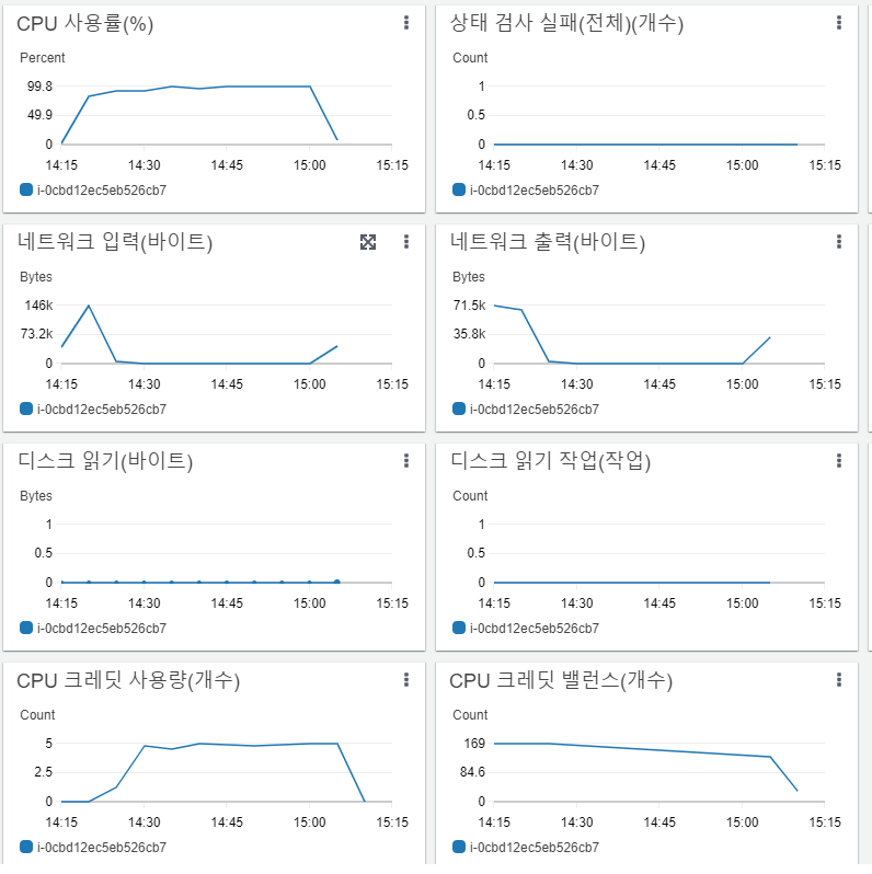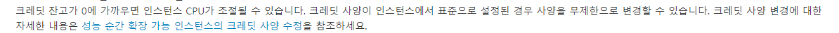 버스트 가능 인스턴스의 경우 cpu 크래딧을 소모하여 버스트하고 기준치 이하면 크래딧을 얻는 방식이라고 합니다.